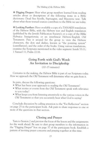 The Leader's Guide provides process guidance for weekly group sessions and understands the role of leader as facilitator of small-group sessions. Procedures for guiding sessions include: directions for using related video segments, and questions for discussion.