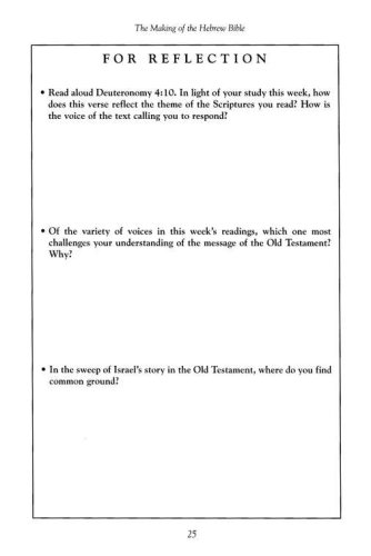 Explore the Old Testament's story of God and God's calling of the people of Israel through the many "voices" of the biblical text. Hear the magnificence of a Creation hymn, discover the law and wisdom teachings, listen to the warning of the prophets and explore the poetry of the Song of Solomon. In the two weekly video segments, first gain insight from biblical scholars and then take a visual tour of archaeological sites, ancient artifacts, and other physical remains, related to and illuminating scripture and events. Ideal experience for adults who are interested in the practice of prayer and worship and would like to connect prayer practice with Scripture. The study is accessible for adults with little prior Bible experience. Participants gain a deeper understanding and appreciation of the Old Testament as an integral part of the Christian Bible and a renewed discovery of our identity in God and God's vision for all things. This eight-week study includes a participant book outlining daily reading assignments for group preparations, a leader guide suggesting discussion activities for use in the 60–90-minute weekly meeting, and a video component providing interpretation and context for the biblical texts. Sessions: The Making of the Hebrew Bible The Creation Story of Israel Out of Bondage Promise and Problem in the Land Israel Has a King Division and the Rise of Prophecy Exile and Response Restoration and Renewal