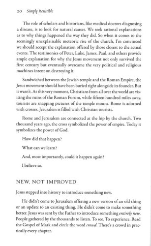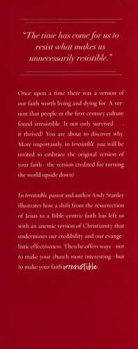 In Irresistible, pastor and author Andy Stanley shows how distortions of the gospel have left us with an anemic version of Christianity that undermines our credibility and our evangelistic effectiveness. He takes readers on a fascinating journey back in time to recover a faith so rich, so dynamic, so disruptive, that it could not be ignored, marginalized, or eradicated.