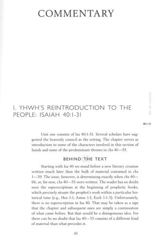 Chapters 40-66 of Isaiah are meaningful in both Judaism and Christianity. The return of Judeans from Babylon, the suffering servant, and the revitalization of Jerusalem are among the images of these chapters. Gilberto Lozano, deftly explores the theology associated with these images, while discussing other important features, such as the striking poetry, the cultural milieu, and the historical setting. Expertly handling the elements of this prophetic literature, Dr. Lozano has produced a well-crafted commentary and an outstanding addition to the NBBC series.