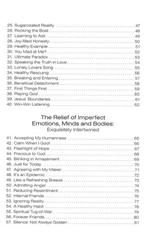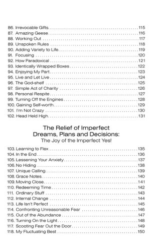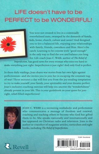 It's a Wonderful (Imperfect) Life is a collection of daily reminders that God does not want women to live in a continually overwhelmed state. Instead, he wants them to live balanced lives and to enjoy their relationships with family, friends, and him. Life coach Joan C. Webb, author of The Relief of Imperfection, offers good news to readers who try too hard to make everything just right: Imperfect is just right! In her conversational, confessional style, Joan shares war stories from her own fight against perfectionism and invites readers to do battle with her. Armed with humor, grace, and helpful coaching exercises, she delivers three minutes a day that will start women on an adventure of just-right, relief-filled imperfection.