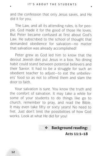 In It's About the Students! you'll find 40 devotionals designed for teachers who have characters in their classrooms. And as you learn about the "students" of the Bible you'll also learn about the Master Teacher, who wants to teach you as well.
