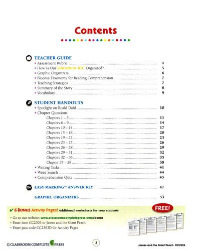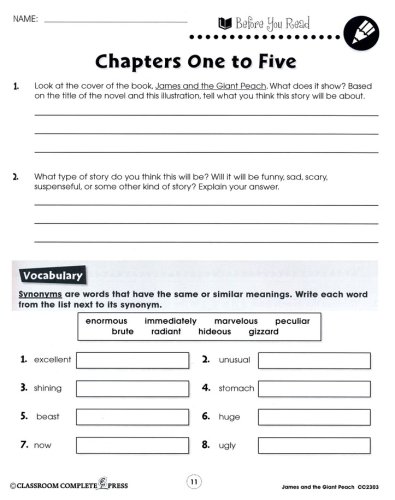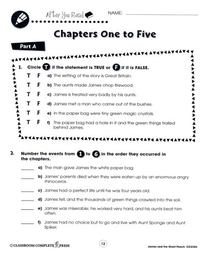 Please Note: the book James and the Giant Peach" by Roald Da hl is required and not included with this study guide.