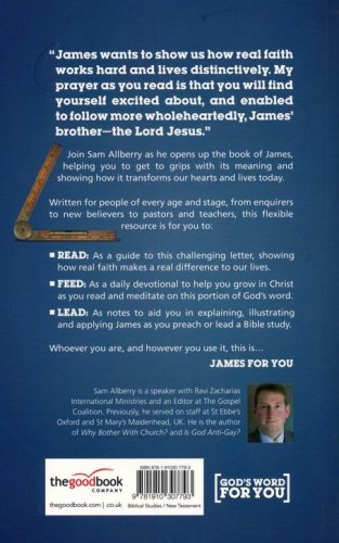 James is a book full of practical, life-changing help for real life. James For You makes clear its teaching and applies its challenges to the experiences of everyday Christians as Sam Allberry brings his clarity, wisdom and humor to every page.