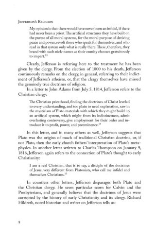Review Jefferson's Religion.