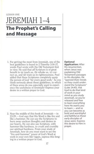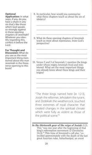FeaturesCover the books of Jeremiah & Lamentations in 12 lessonsEquip yourself to lead a Bible studyImagine the Bible’s historical worldStudy word origins and definitionsExplore thoughtful questions on key themesGo deeper with optional projectsAdd your notes with extra space and wide marginsFind the flexibility to fit the time you have