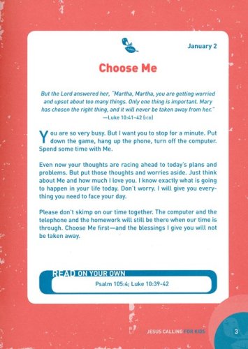 With devotionals written as if Jesus is speaking directly to a child's heart, Jesus Calling® for Kids is now available in deluxe leathersoft package.