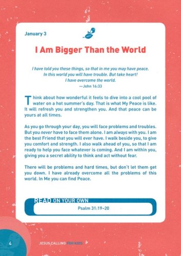 Based on Sarah Young’s renowned bestseller Jesus Calling, this is a wonderful devotional for children. The scripture and themes correspond with the daily reading in the adult version, so parents and kids can share spiritual time together.