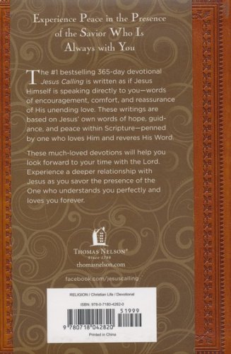 Written as if Jesus Himself is speaking directly to you, Jesus Calling invites you to experience peace in the presence of the Savior who is always with you.