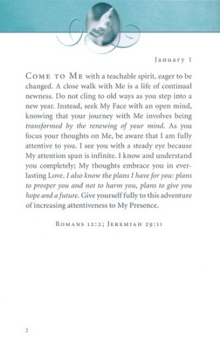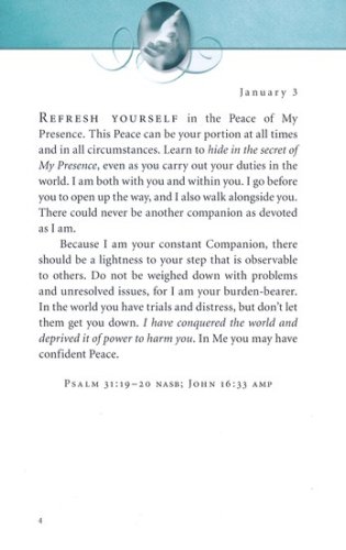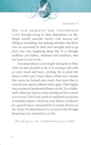 In this bestselling devotional, readers will receive words of hope, encouragement, comfort, and reassurance of Jesus’ unending love. The devotions are written as if Jesus Himself is speaking directly to each reader. Each entry is accompanied by Scripture for further reflection and meditation.