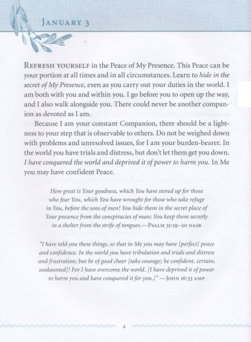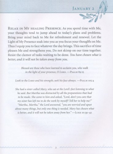 Experience a deeper relationship with Jesus as you savor the presence of the One who understands you perfectly and loves you forever. With Scripture and personal reflections, New York Times bestselling author Sarah Young brings Jesus' message of peace—for today and every day.