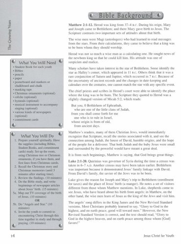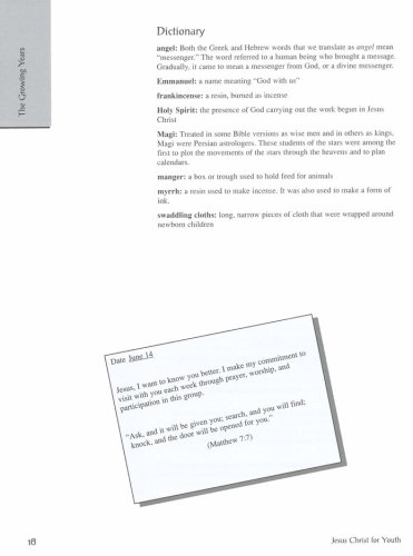 Guide your youth in their experience of meeting the Life Changer. There is no doubt about it: Knowing Jesus changes lives. Jesus brings hope, joy, forgiveness, and purpose to our lives. We want those things for our youth too. More than 100,000 youth have encountered and deepend their relationship with the Master through Jesus Christ for Youth. Now, this classic has been updated for a new generation. Jesus Christ for Youth integrates the life of Jesus and its meaning for youth today. Through this resource, youth will meet Jesus Christ in a personal, meaningful, and life changing way and will immerse them in Jesus' life and teachings. Ideal for younger teens and those new to Christian study. Twenty-six sessions on Jesus' life and teachings.Benefits for your youth: Familiarity: Youth who go all the way through this resource will explore nearly all of the teachings and events of Jesus' life. The participants in this experience will become more familiar with the Life Changer and with their Bible. Each session includes Bible study, directly from the Gospels, of aspects of Jesus' life and teachings. Connection: The resource helps connect Jesus' day with ours. You will find at least two choices in each time plan for linking the Scriptures with everyday life of teens. When the past has meaning for the present, youth see the relevance for their lives. Invitation: Each chapter includes an invitation to your co-learners (and you) to experiment with Christian living in a new way. These invitations to commitment will help the youth better understand and know Christ and what following him means. The actions suggested are specific and doable; they are small steps on the big journey. Community: Learning about Jesus Christ is important, but it is not enough. Ultimately, what changes lives is the integration of head, heart, and hands, with Christ at the center. One of his great gifts is the faith community, most frequently lived out as the church. As the Body of Christ, we love, support, and challenge one another in our faith journey and work in the world. While your teens are learning about Jesus, they are also experiencing Christian community. The activities in this resource are designed to encourage growing together spiritually as a community of faith. Contents The Growing YearsVisitors at the ManagerVisitors to the CityAt the RiverIn the DesertCalling the DisciplesAt the SynagogueCalling the DisciplesJesus the TeacherModel of a DiscipleThe Secret of WorshipFinding the KingdomJesus the StorytellerThe Loving FatherThe Good SamaritanJesus and OthersNicodemusMen and WomenThe WealthyThe IllThe DisciplesThe Identity of JesusPeter's ConfessionThe TransfigurationI AmThe End of the BeginningPalm SundayThe Last SupperThe Trial and CrucifixionThe New BeginningResurrection!Jesus and ThomasThe Road to EmmausThe Great Promise