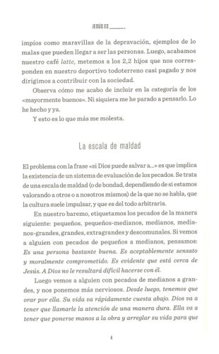 Jesús es _. escrito por Judah Smith te estimulará a deshacerte de tu opinión preconcebida y limitada de Jesús para que puedas aceptar quién es él en verdad, en nuestra vida; más real y relevante de lo que hayamos imaginado jamás». La oración de Judah es que, a medida que vayas leyendo este libro, tú también veas a Jesús tal como es. Y cuando lo logres, te parecerá irresistible. Este libro es: