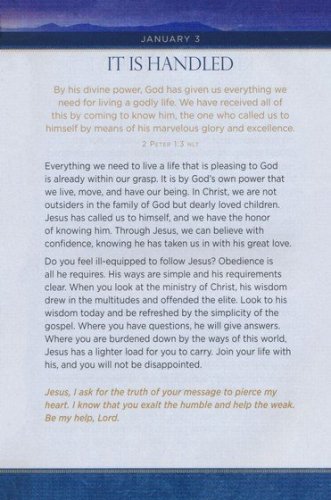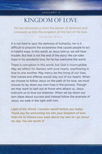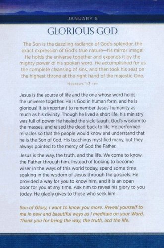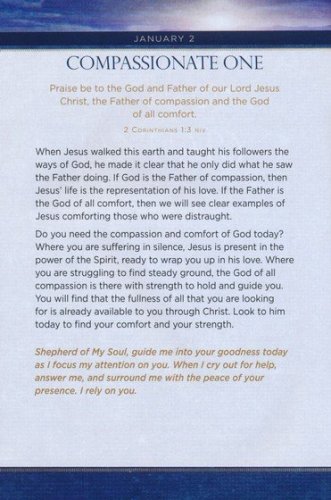 As you quiet yourself before him and meditate on these Scriptures, devotions, and prayers, experience the goodness of his presence, and be refreshed with his perfect peace. When you prioritize Jesus above everything, other concerns fade. Hope dawns with the new day. Tender mercies fall fresh. Boundless joy springs up from a well within. And you find the strength to walk through each day with grace for others and for yourself.