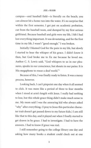 In Jesus > Religion, Bethke unpacks similar contrasts that he drew in the poem—highlighting the difference between teeth gritting and grace, law and love, performance and peace, despair and hope. With refreshing candor he delves into the motivation behind his message, beginning with the unvarnished tale of his own plunge from the pinnacle of a works-based, fake-smile existence that sapped his strength and led him down a path of destructive behavior.