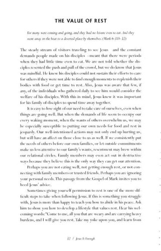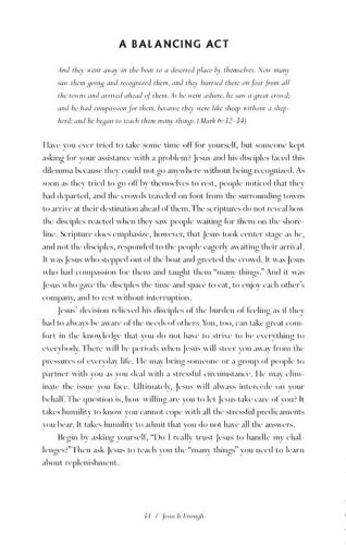 When stormy trials hit us, our recollection of Jesus' faithfulness can fade as worry, anger, jealousy, fear, sickness, stress, and unforgiveness threaten to rob us of the love and hope that can be found in Jesus. And yet we can experience comfort in the womb of these stormy seasons. Pondering on the stories surrounding Jesus' life presents us with practical wisdom on how to respond to the turbulent episodes we encounter. Jesus' teachings can rejuvenate and instill within us a sense of hope in his love. If we allow him, Jesus can be enough for us, in and out of the storms of life.