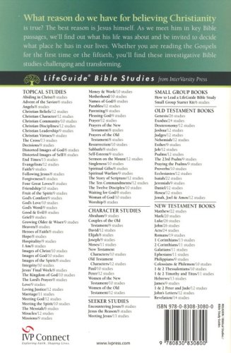 What reason do you have for believing Christianity is true? The best reason is Jesus himself. In this ten session LifeGuide ® Bible Study, James W. Sire invites you to meet Jesus by digging deep into the Bible. You'll discover what Jesus did and said. And you'll be encouraged to decide what place Jesus has in your life today. Whether you are reading the Gospels for the first time or for the fiftieth, you'll find these investigative Bible studies challenging and transforming. This revised LifeGuide Bible Study features additional questions for starting group discussions and for meeting God in personal reflection, together with expanded leader's notes and a "Now or Later" section in each study. For over three decades LifeGuide Bible Studies have provided solid biblical content and raised thought-provoking questions—making for a one-of-a-kind Bible study experience for individuals and groups. This series has more than 130 titles on Old and New Testament books, character studies, and topical studies.