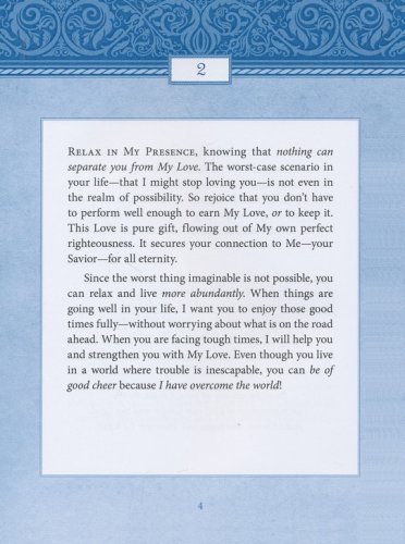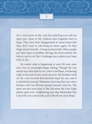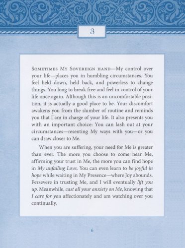 Based on truths in Scripture, Jesus Today® is written as if Jesus Himself is assuring you that He is in control, that He is good, and that a glorious future awaits all who anchor their hope in Him.
