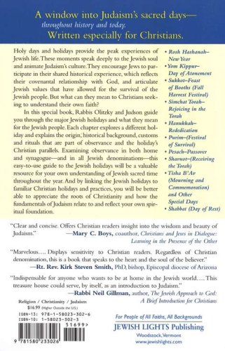 This straightforward guide to the major Jewish holidays is written especially for Christians. Accessible, informative and rich with personal anecdotes, it explores the historical development of each holiday, basic information about the meaning of the holiday, and the ways it is observed today. Holidays include:Rosh HashanahYom KippurSukkot (Feast of Booths)Hanukkah Purim (Feast of Esther)Passover (Pesach)Shavuot (Giving of the 10 Commandments) Hashoah (Holocaust Memorial Day)Yom Hazikaron (Remembrance Day)Yom Haatzmaut (Israel Independence Day)