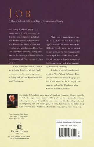 After a year of focused research into the life of Job, Charles Swindoll says, "Job appears boldly in the ancient book of the Bible that bears his name, and yet most of us have not taken the time to examine his life in depth. But a careful study of Job's life will convince us that this is another of God's amazing men with heroic character qualities worth emulating."