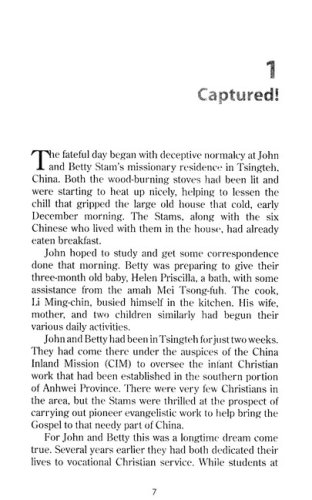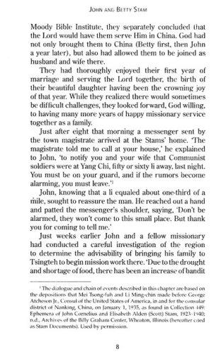 “John and Betty had been in Tsingteh for just two weeks. They had come there under the auspices of the China Inland Mission (CIM) to oversee the infant Christian work that had been established in the southern portion of Anhwei Province. There were very few Christians in the area, but the Stams were thrilled at the prospect of carrying out pioneer evangelistic work to help bring the Gospel to that needy part of China.”