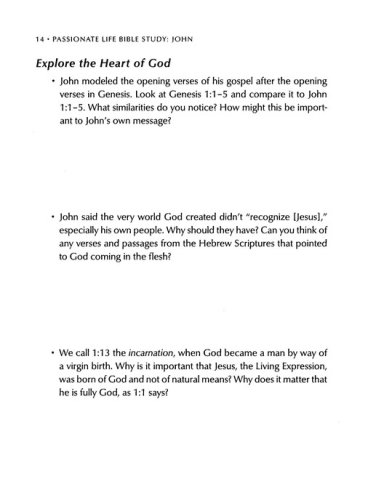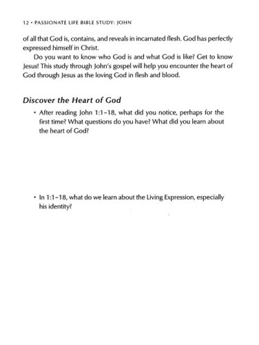 This Bible study guide is designed to help you discover God’s love through John’s magnificent historical biography of the Son of God. Each uniquely-crafted lesson opens with an introduction and key verse to reveal important themes. Four sections guide readers through John in a way that will help you discover, explore, experience, and share the heart of God more deeply. John wrote his gospel so that you will fully believe in Jesus. Embark on an exciting journey to discover the eternal love and life he has for you!
