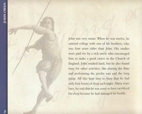 John Owen was a great Puritan preacher who lived in England. In this book, Simonetta Carr informs readers about Owen’s life, revealing some of the things that interested him while in school, the care he showed to people when he became a pastor, and the influential books that he wrote. Readers will also come to understand the difficult times in which Owen lived, and how he handled the terrors of war and religious persecution. Full of illustrations and fascinating information, this is an ideal way for young readers to learn history.