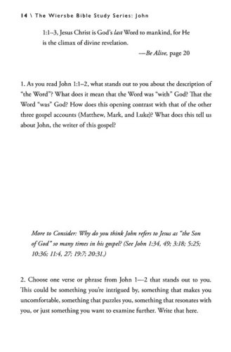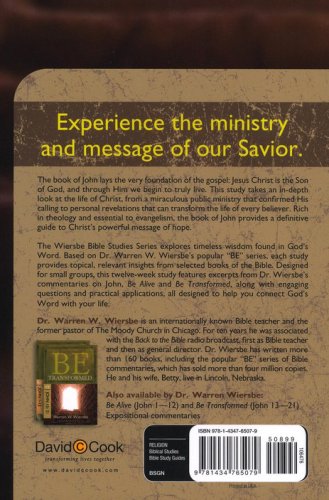 The Wiersbe Bible Studies Series explores timeless wisdom found in God's word. Based on Dr. Warren W. Wiersbe's popular "BE" series, each study provides topical, relevant insights from selected books of the Bible. Designed for small groups, this twelve-week study features excerpts from Dr. Wiersbe's commentaries on John, Be Alive and Be Transformed, along with engaging questions and practical applications, all designed to help you connect God's Word with your life.