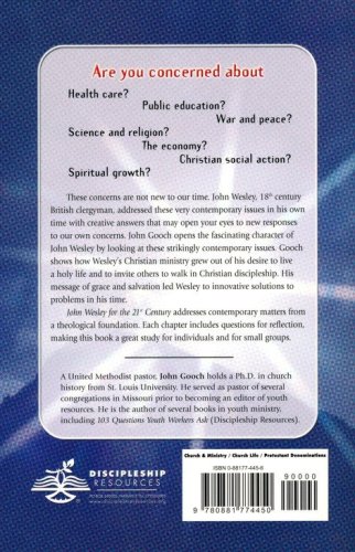 John Gooch connects modern-day readers with the 18th-century world of John Wesley.  John Wesley for the 21st Century is more than an academic or historical account of Wesley’s life.  It also offers contemporary readers to connect to their Wesleyan heritage by comparing contemporary issues to topics Wesley addressed during his day.  Wesley was deeply concerned with the salvation of the individual, but Wesley also attended to needs that seem very current such as health care, poverty, slavery, and the need for growth as disciples of Christ through small group ministries.  Each chapter includes questions for reflection to help readers understand the different dimension of the Wesleyan tradition.