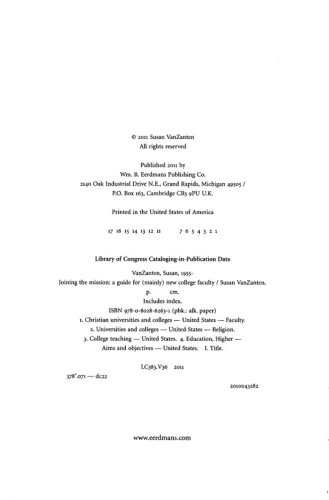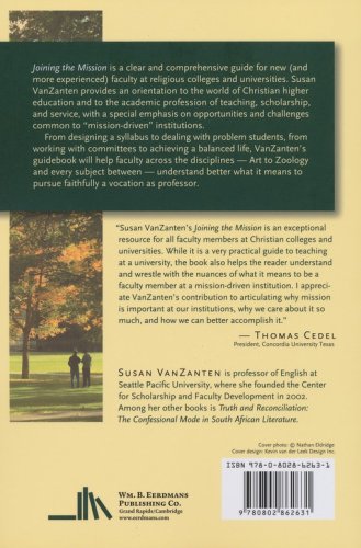 Joining the Mission is a helpful guide for new (and experienced) faculty at religious colleges and universities. Susan VanZanten here provides an orientation to the world of Christian higher education and an introduction to the academic profession of teaching, scholarship, and service, with a special emphasis on opportunities and challenges common to "mission-driven" institutions. From designing a syllabus to dealing with problem students, from working with committees to achieving a balanced life, VanZanten’s guidebook will help faculty across the disciplines — Art to Zoology and every subject between — understand better what it means to pursue faithfully a vocation as professor.