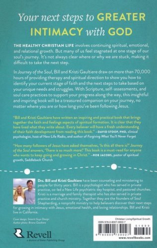 That's where Bill and Kristi Gaultiere come in. After decades in private practice as counselors and therapists, they have developed a unique model for growing in grace. In Journey of the Soul, they draw on more than 70,000 hours of providing therapy and spiritual direction to show you how to identify your current stage of faith and the next steps to take based on your unique needs and struggles. With Scripture, self-assessments, and soul care practices to support your progress along the way, this insightful and inspiring book will be a treasured companion on your journey no matter where you are or how long you've been following Jesus.