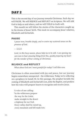 Pause – remove all distractions, be still and make room to connect with GodRejoice and Reflect – give thanks, before engaging with a short passage of ScriptureAsk – bring your questions to GodYield – surrender to God's will for your life