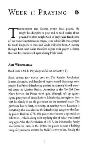 Each of the 47 devotions (one for each day during Lent and Holy Week) is freestanding, but the themes link groups of devotions together, lending depth and continuity to them. Vivid word pictures, crisp retelling of texts and creative allegory spark delight in the beauty of Luke's Gospel and a desire to follow Christ. Each meditation focuses on a key point from the reading in Luke and offers excellent questions for small-group discussion or for individual reflection, as well as prayer.