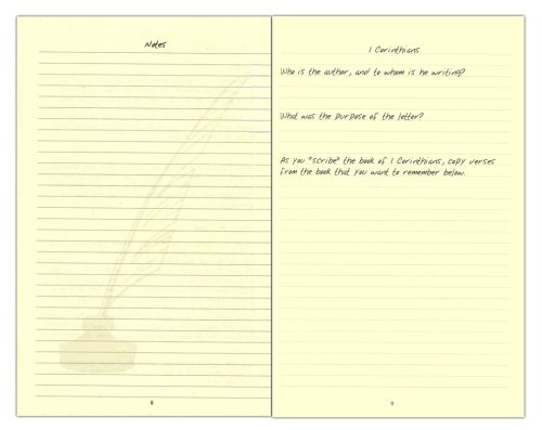Each book is organized so that you can write out your very own copy of Scripture. You will be writing the Bible text only on the right-hand page of the book. This should make for easier writing and allows ample space on the left page to write your own notes and comments. From time to time a question or word will be lightly printed on the left page; these questions are to aid in further study but should not interfere with your own notes and comments.