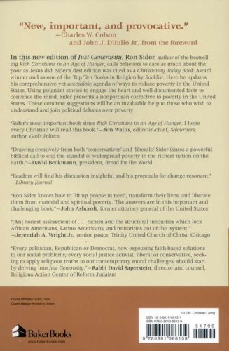 Just Generosity calls Christians to examine their priorities and their pocketbooks in the face of a scandalous tendency to overlook those among us who suffer while we live in practical opulence. This holistic approach to helping the poor goes far beyond donating clothes or money, envisioning a world in which faith-based groups work with businesses, the media, and the government to help end poverty in the world's richest nation. This updated edition includes current statistics, policy recommendations, and discussions covering everything from welfare reform, changes to Medicade, and the Social Security debate.