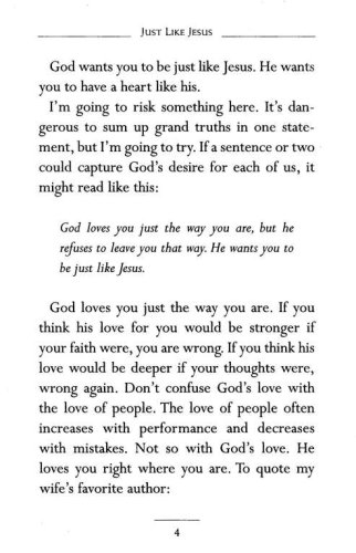 In Just Like Jesus, Max Lucado helps you answer these questions. He helps you understand God's wonderful ways of transformation. Would you like to know more? Then read on. And remember: God loves you just way you are, but he refuses to leave you there. He wants you to be just like Jesus.
