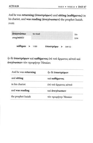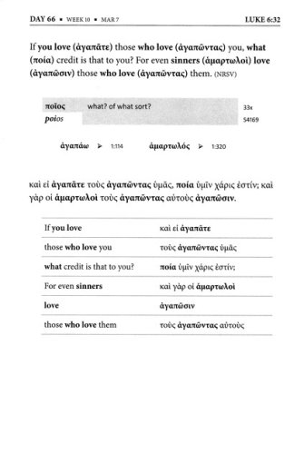 After working through Keep Up Your Biblical Greek in Two Minutes a Day: Volume 1 and just the first 90 days of volume 2, you will have seen all the vocabulary you need in order to engage with any verse in the New Testament with the help of a resource such as the UBS Greek New Testament Reader’s Edition. And by the time you finish volume 2, you will have read through 730 verses of the New Testament in the original Greek!