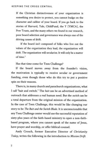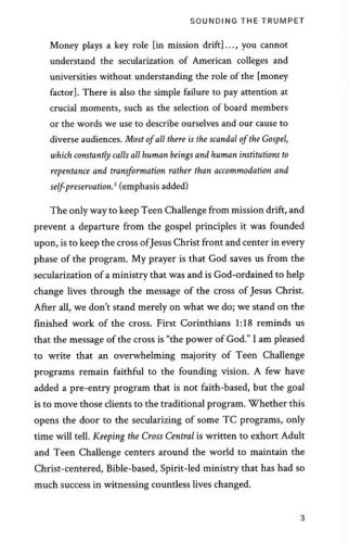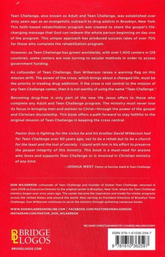 Teen Challenge, also known as Adult and Teen Challenge, was founded as an evangelistic outreach to drug addicts in Brooklyn, New York City. As a holistic Christian ministry with the life-changing message of the gospel, this faith-based rehabilitation program was created with the vision that God can redeem the whole person, starting on day one of the program. This unique approach has produced success rates of over 70% for those who complete the rehabilitation program. However, as Teen Challenge has grown worldwide, with over 1,400+ centers in 129 countries, some centers are now turning to secular methods in order to access government funding. As co-founder of Teen Challenge, Don Wilkerson raises a warning flag on this mission drift: the power of the Cross, which brings about a changed life, must be the priority in treating drug addiction; if the Cross is not central to the mission of any Teen Challenge center, then it is not worthy of using the name "Teen Challenge." The ministry must never lose its vision and focus in bringing men and women to Christ—through the gospel and discipleship—and stay faithful to the original mission which the founders stood upon.