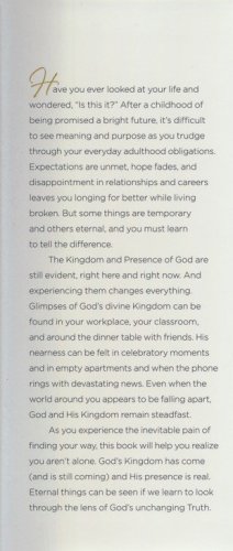 The Kingdom and Presence of God are still present, right here and right now. And experiencing them changes everything. Glimpses of God's divine Kingdom can be found in your workplace, classroom, and around the dinner table with friends. His nearness can be felt in celebratory moments and in empty apartments and when the phone rings with devastating news. Even when the world around you appears to be falling apart, God and His Kingdom remain steadfast.