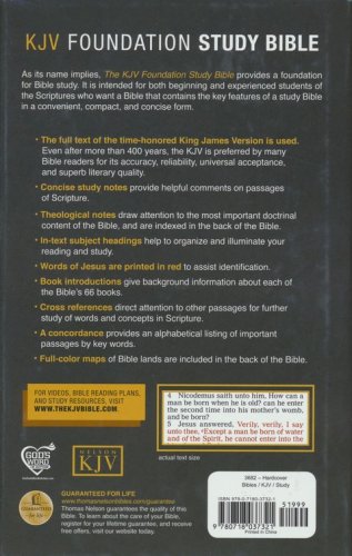 Intended for both beginning and experienced students of Scripture who want a Bible that contains the key features of a study Bible in a convenient and compact size, the KJV Foundation Study Bible is perfect for students, church leaders, and homeschool use.