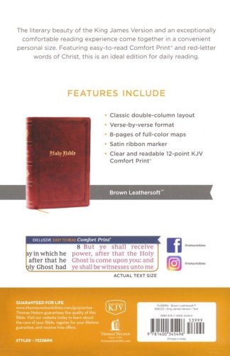 The literary beauty of the King James Version and an exceptionally comfortable reading experience come together in a convenient personal size. Featuring easy-to-read Comfort Print® and red-letter words of Christ, this an ideal edition for daily reading and taking with you.