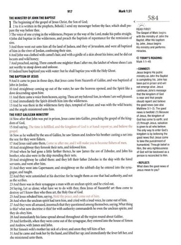 a built-in, easy-to-complete reading plan (just 10 minutes a day over two years)hundreds of explanatory marginal notes providingcontext for each readingexplanation of confusing ideas and termselaboration of scripture’s larger themes—especially of God’s love for you