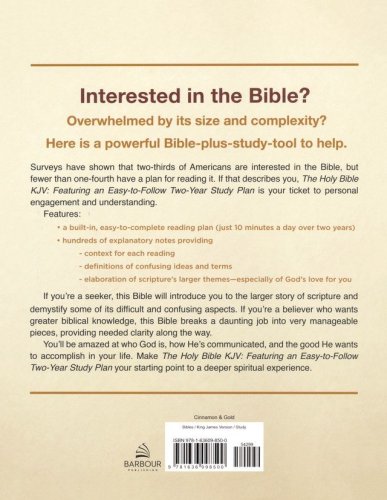 Surveys have shown that two-thirds of Americans are interested in the Bible, but fewer than one-fourth have a plan for reading it. If that describes you, The Holy Bible KJV: Featuring an Easy-to-Follow Two-Year Study Plan is your ticket to personal engagement and understanding.