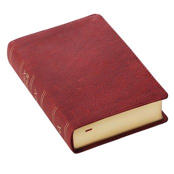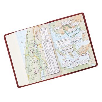 Text Size 10 ptGilt-Edged PagesTop Grain Premium LeatherLay-Flat SpineThumb-indexing TabsRibbon Page Marker Words of Christ in Red InkFootnote Verse Cross-Reference GuideConcordanceScripture IndexOne-Year Bible Reading Plan8 Full-Color Maps4.5" x 6.5" x 1.4"
