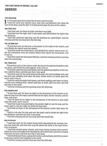 The KJV Notetaking Bible is designed to enhance personal Bible study as well as preparation for teaching and preaching. The Bible features the popular King James Version in a single-column setting. Abundant space is provided with a 1.75 inch note taking space on each page to make observations.