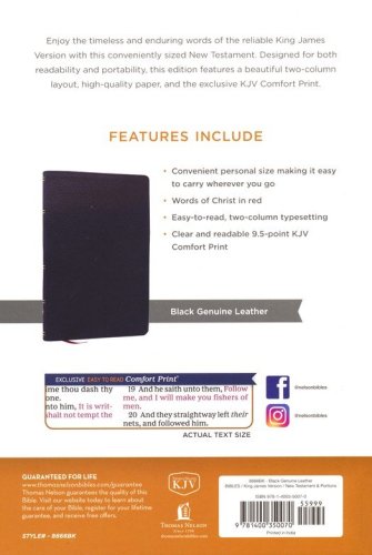 This edition of the New Testament makes reading a delight with its two-column layout, high-quality paper, and the clear and readable KJV Comfort Print. And its convenient personal size makes it one you’ll want to carry with you everywhere you go.