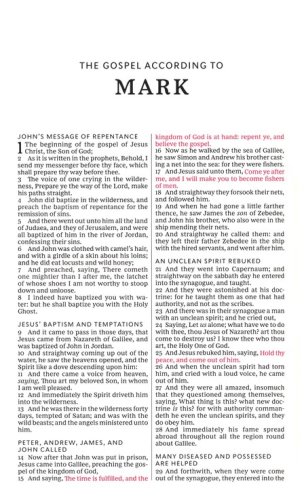 Presentation page allows you to personalize this special gift by recording a memory or noteWords of Christ in red quickly identify verses spoken by JesusReading plan guiding you through the entire Bible in a yearFull color maps show a visual representation of Israel and other biblical locations for better contextSatin Ribbon Markers are a useful tool to easily navigate and keep track of where you were readingEasy-to-read line-matched large 11.5-point KJV Comfort Print