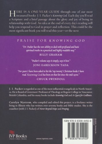 Here is a daily guide through one of the most treasured books of Christian spirituality: J. I. Packer's Knowing God. Each day you'll read a Scripture and a brief passage about the glory and joy of being in relationship with God. An idea at the end of each day's reading will help you to respond to God in prayer and reflection. This could be the most significant book you will read this year—or next.