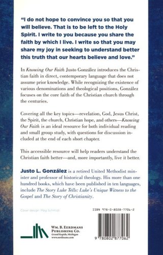 In Knowing Our Faith Justo González introduces the Christian faith in direct, contemporary language that does not assume prior knowledge. While recognizing the existence of various denominations and theological positions, González focuses on the core faith of the Christian church through the centuries.
