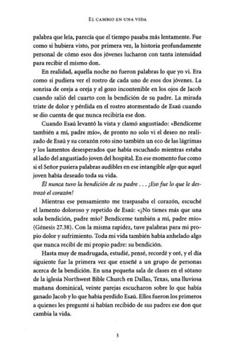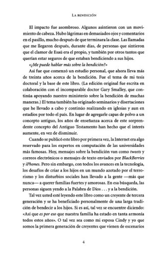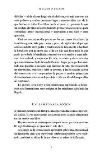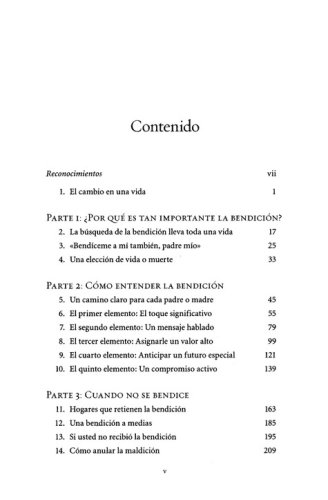 La aceptación de nuestros padres afecta la forma en que nos vemos nosotros mismos y cómo nos relacionados con los demás. ¿Y qué pasaría si no hubiéramos vivido esto? Los capítulos finales incluyen ayuda y esperanza para aquellos que crecieron sin la bendición de sus propios padres, la bendición y los abuelos, formas de vivir la bendición, e ideas para momentos de bendición.